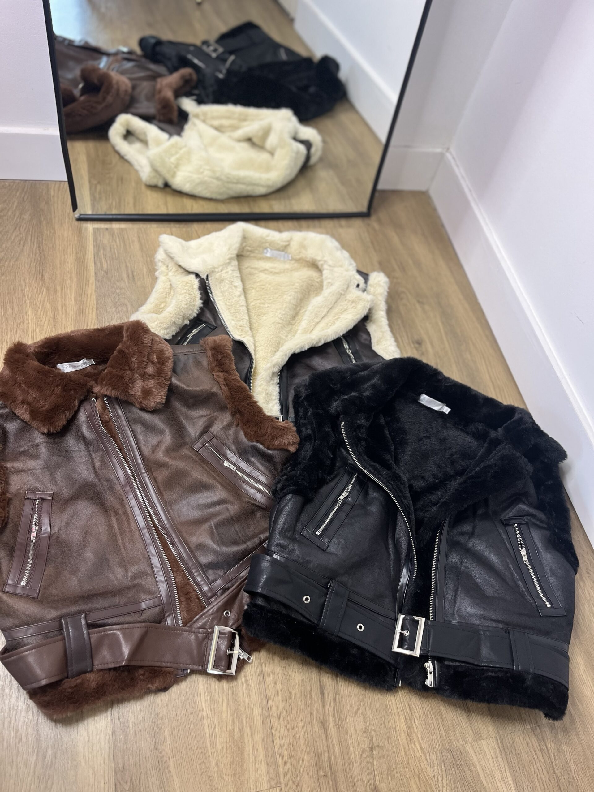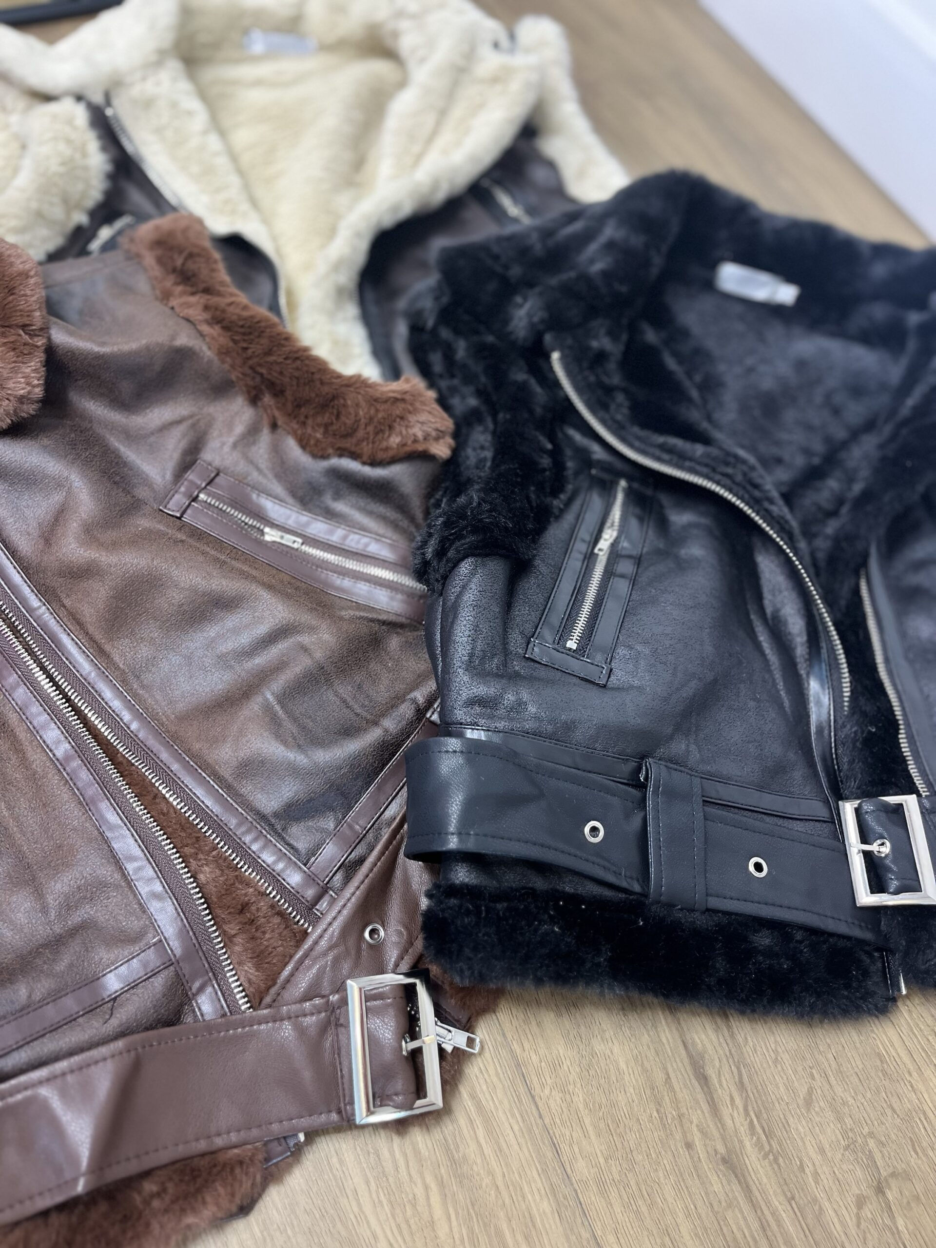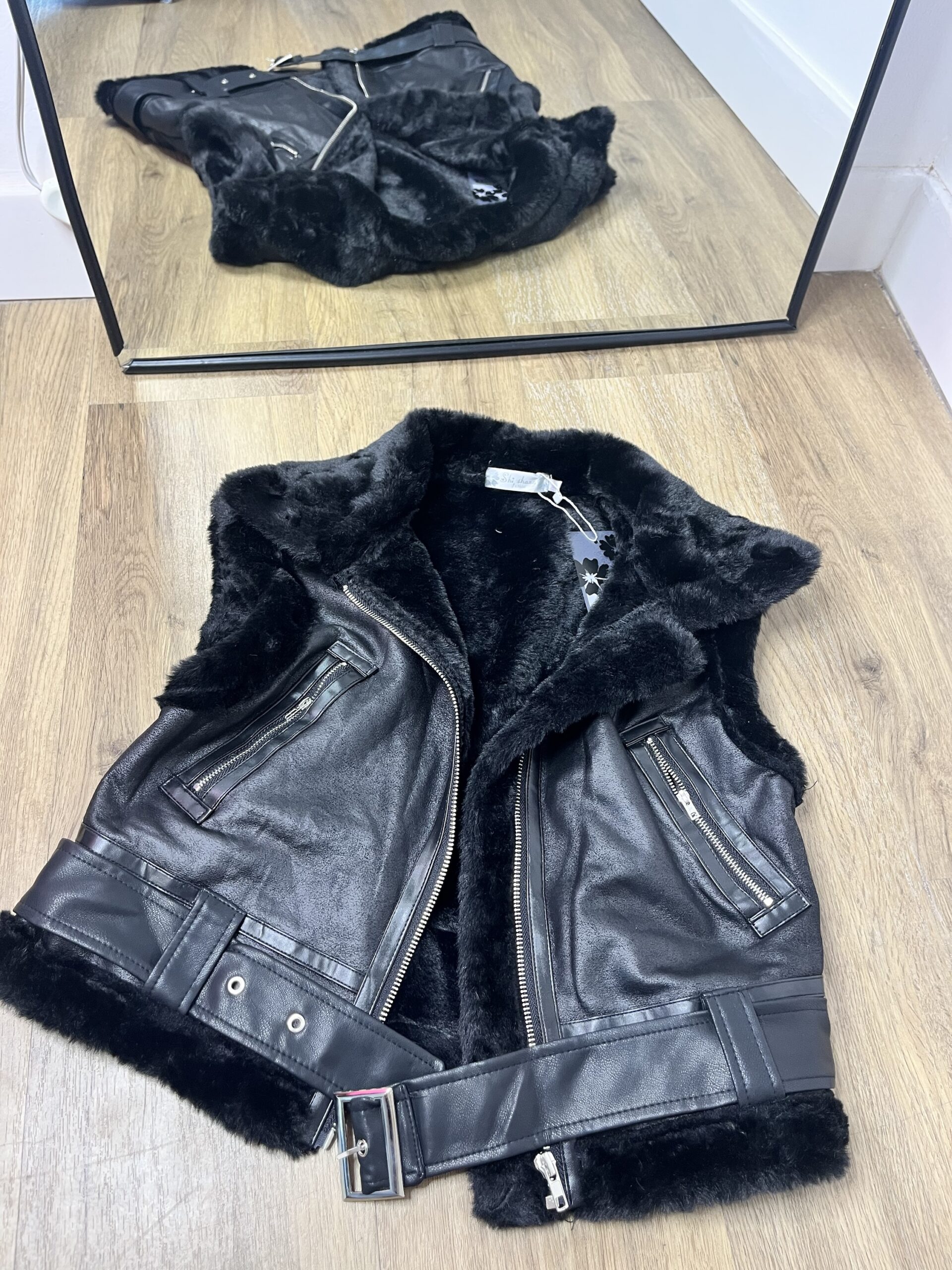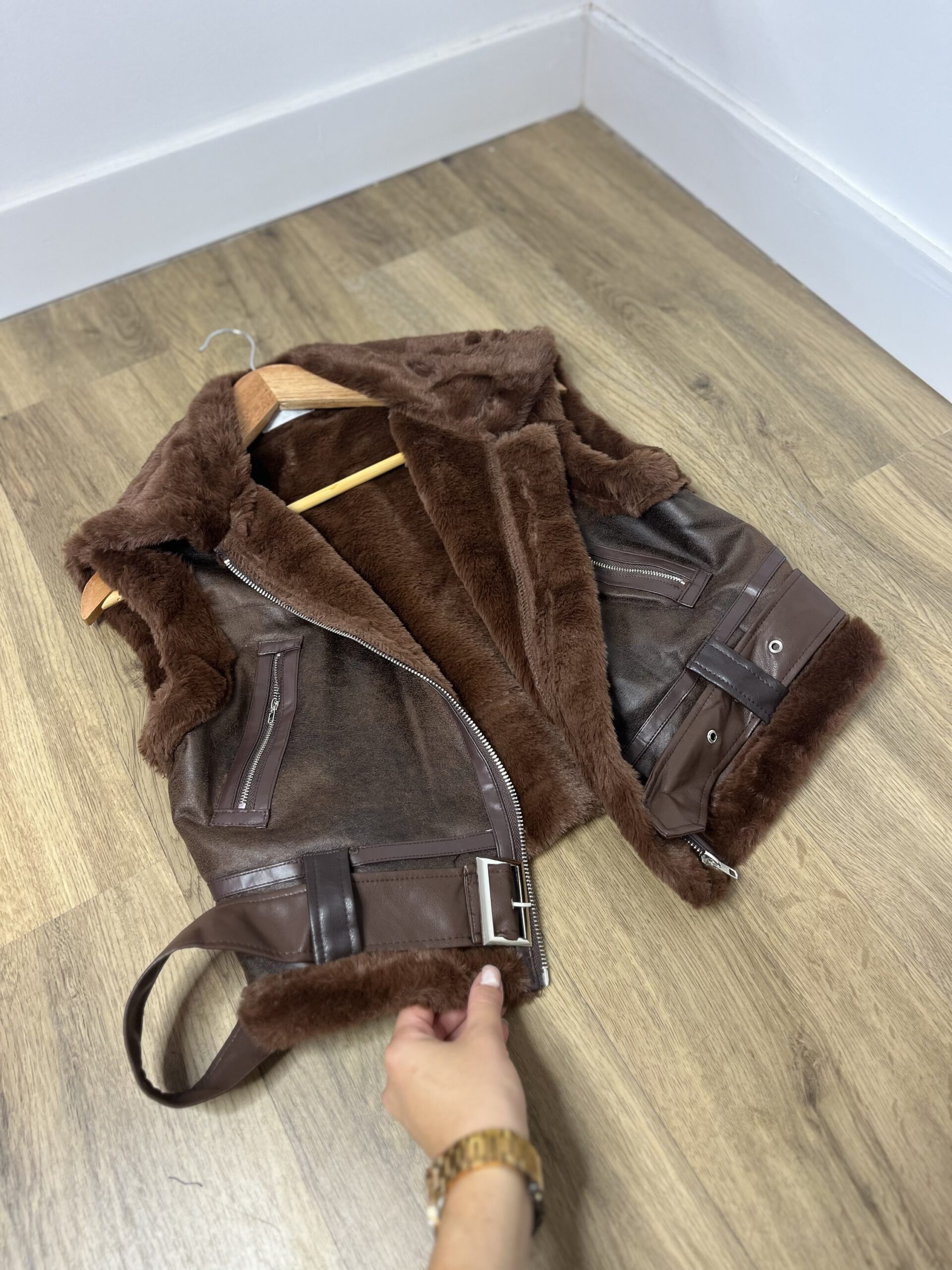 Chaleco en tendencia, peludito por dentro, con bolsillos y con cinto de hebilla