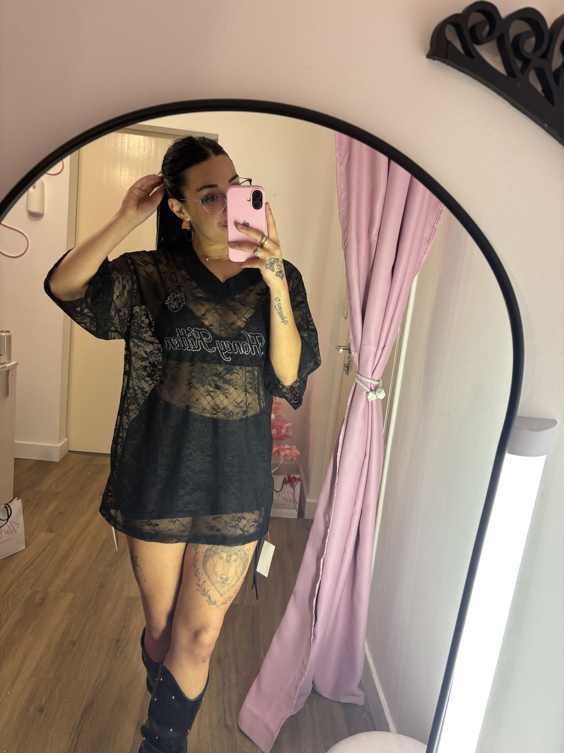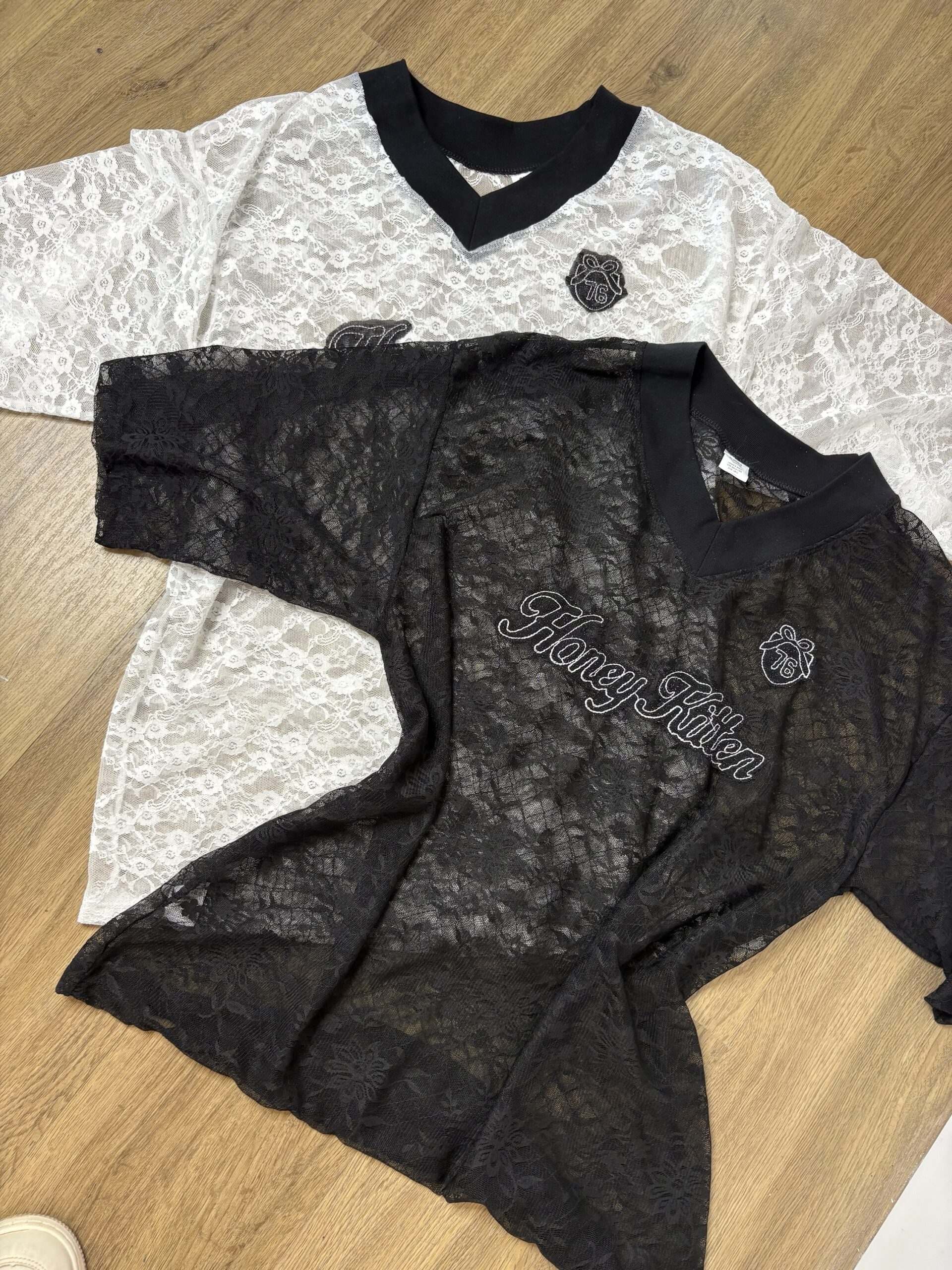 Remeron de encaje con letras, super bomba