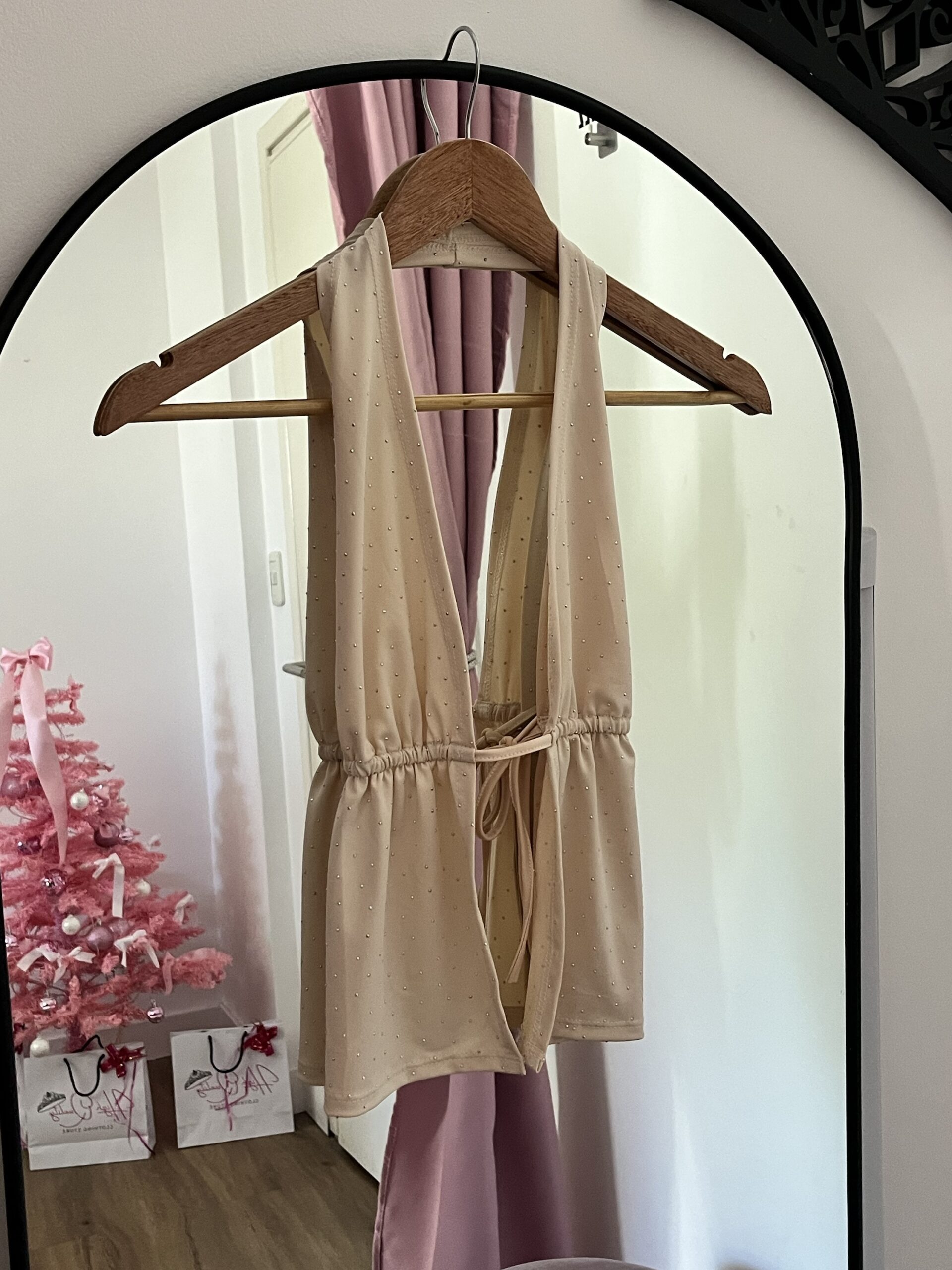 Top cortina con brillos atado en la espalda