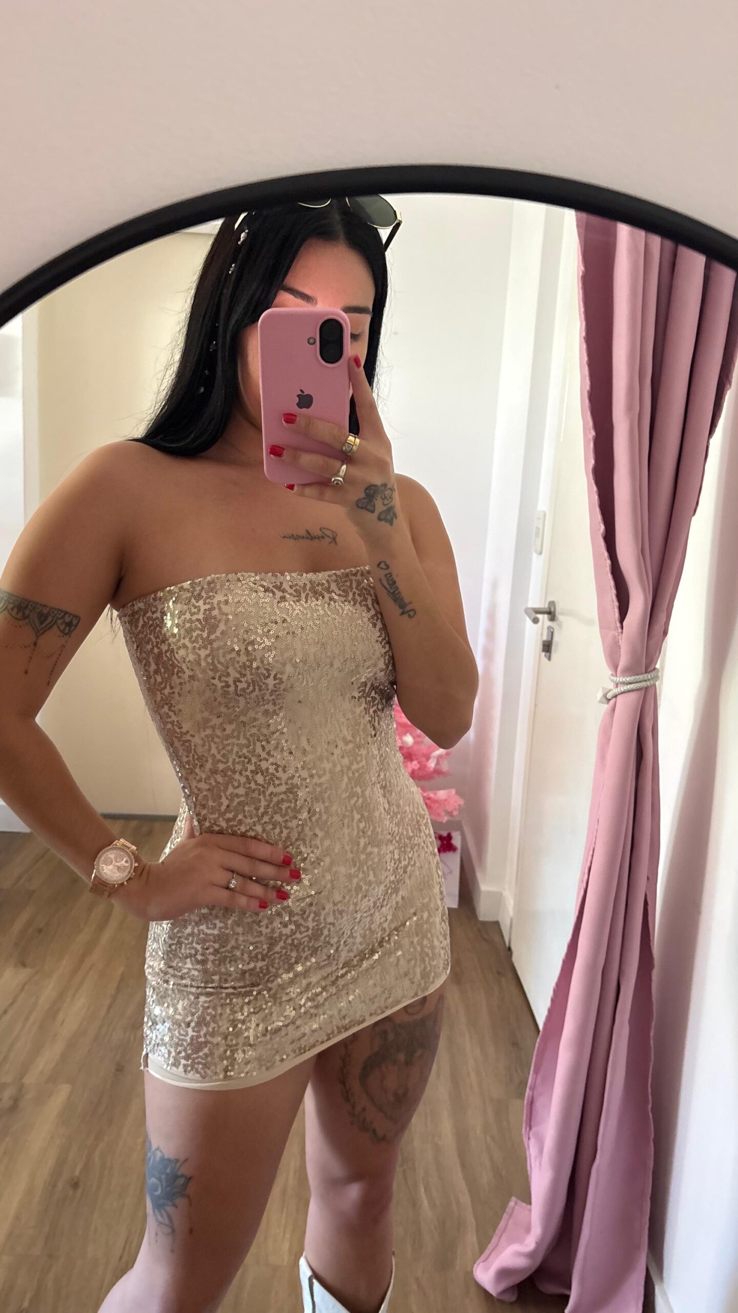 Vestido strapless de lentejuelas doradas